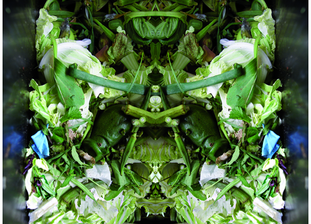 Im Frühjahr 2018 habe ich in Rom tagelang in einer der größten Markthallen der italienischen Hauptstadt aussortierte Lebensmittel fotografisch dokumentiert. Die Händler werfen fehlerhaftes Obst und Gemüse mitsamt Fremdmaterialien in große schwarze Kunststofftonnen. Durch meine gespiegelte Verdoppelung des eigentlichen Motivs wandeln sich beliebige Anhäufungen zu mehrschichtigen "Fantasie"-Gebilden; visuelle Metapehern eines weltweiten Problems der Verschwendung von Lebens- und Nahrungsmitteln.