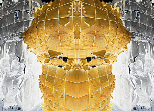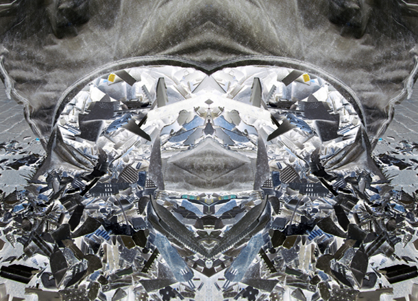 Was sind wir doch für Verschwender! „Müllcollagen“ nennt Kerstin Weichsel ihre schillernden Fotografien, die meist noch digital bearbeitet sind. Bei diesem Bild der „GOLD“-Serie wurde das Bild vertikal und horizontal gespiegelt. Müll, da denkt man automatisch an Benutztes und Verschmutztes. Dabei handelt es sich bei den Bergen von Staniol, Gummi oder Plastik, die die Künstlerin in aller Welt aufgenommen hat, um sogenannten sortenreinen Abfall – Verpackungen, die aus verschiedenen Gründen am Markt vorbei produziert wurden und sofort in der Recycling-Anlage gelandet sind. Das ist gut, weil sie wiederverwertet werden. Und gleichzeitig ein Unding, weil so viel Energie für ihre Herstellung verpufft ist. Im Titel von Weichsels Serie spiegelt sich dieser Zwiespalt: „GOLD“ zeigt die Schönheit des Überflüssigen und kritisiert zugleich unseren Umgang mit Ressourcen."